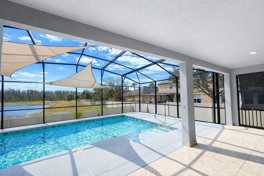 AVAILABLE STARTING JUNE!!!!! EXCEPTIONAL RESORT-STYLE LIVING Single-Story 4-bedroom, 3-bath single-story pool home for lease in the desirable Reserve at Sawgrass community. Situated on a premium POND lot with no rear neighbors, this home offers serene WATER VIEW and a private SALTWATER pool with water features and covered lanai, perfect for relaxing or entertaining. The open-concept layout features a bright living, dining, and kitchen area with 42” cabinets, granite/quartz countertops, stainless steel appliances, tile backsplash, and walk-in pantry. The expansive primary suite includes a walk-in closet, renovated bathroom with dual vanities, glass-enclosed shower, and a FLEX SPACE ideal for a nursery or home office overlooking the pool. Two secondary bedrooms share a JACK-AND-JILL bathroom, plus an additional PRIVATE EN-SUITE bedroom for guests. Additional highlights include DOUBLE DOORS to the pool area, Ceramic bedroom flooring, 18” porcelain tile in main areas, INTERCOM MUSIC SYSTEM, SOLAR PANELS (INCLUDED) and a 2-car garage. Community amenities include pool, cabana, playground, sports field, and dog park, all conveniently located minutes from Orlando International Airport, Lake Nona, SR-417, shopping, and dining.