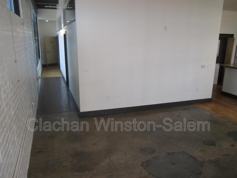 This loft apartment showcases a blend of modern amenities and industrial charm. The open-concept living area boasts high ceilings with exposed wooden beams and large windows, flooding the space with natural light. The kitchen features sleek stainless steel appliances, dark wood cabinetry, and granite countertops. The bedroom offers ample space and storage. Two well-appointed bathrooms feature contemporary fixtures and finishes. Hardwood floors throughout add warmth, while a dedicated laundry area with stacked washer and dryer provides convenience. The apartment's layout maximizes space efficiency, creating a stylish urban retreat in the heart of Winston-Salem.