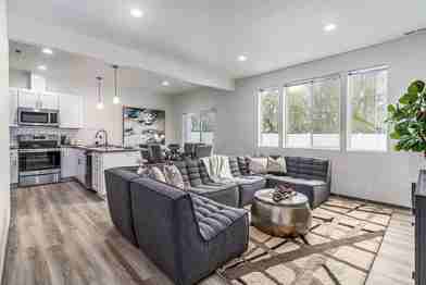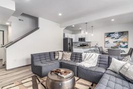 This stunning, newer built duplex boasts an open layout with three bedrooms and 2.5 bathrooms. The living room is spacious and bright, thanks to large windows and modern LVP flooring. The kitchen is a chef's dream, featuring stainless steel appliances, quartz countertops, a refrigerator with ice maker and water dispenser and a pantry closet with built-in shelves. The dining room, complete with sliding doors, leads to a back patio with a fully fenced backyard, perfect for outdoor enjoyment. Conveniently located next to the kitchen is a laundry room equipped with a full-size washer and dryer, and access to a two-car garage. Upstairs, you'll find all the bedrooms and two full bathrooms. The primary bedroom is generously sized and features a huge walk-in closet and a full bathroom with double sinks with plenty of storage underneath. This property is located on a quiet dead end street, just a couple of blocks away from Mead High School. Experience the best of Spokane living in this beautiful home.