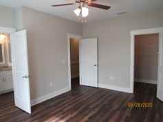 Upstairs, the primary suite offers a relaxing retreat with a walk-in closet and private en suite bath featuring a double vanity, soaking tub, and separate walk-in shower. Two additional guest bedrooms share a full bath, and laundry hookups are also located upstairs, with the washer and dryer included in the rental. The home provides plenty of storage throughout.
