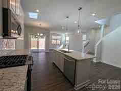 New Build, End-unit Townhome located in the Griffith Lakes Community! This pristine 2 story, 3 bedroom, 2.5 bath townhome features; a 1 car garage, a covered front porch and back patio, an enclosed backyard, and an open floor plan. A spacious office space is located on the main level. The kitchen includes a large center island, a breakfast bar, granite countertops, subway tiled backsplash, separate dining space, a pantry, and stainless steel appliances. The upper level features the primary ensuite which includes double sinks, a beautiful. shower with a seat, and a walk-in closet. Two secondary bedrooms and a shared hall bath are also located on the upper level. Washer and dryer are included. This home is conveniently located near Interstate 485, shopping, and dining, with community access to a 17-acre lake, walking trails, and a dog park. One pet, 60 lbs. and under, will be considered and is conditional with a non-refundable pet fee. Pet fees and security deposits will be determined via the outcome of the background screening processes.