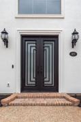 Grand exterior facade with sleek painted brick and black accents. This home was designed for entertaining and features two living rooms. Formal Dining Room. Living Room with beautiful natural light. Family Room features to-the-ceiling fireplace, oversized modern fan as well as built-in cabinetry. Downstairs Powder Room. Chef's Kitchen, featuring stainless steel appliances, custom cabinetry, oversized island with storage and gas cooktop, two sinks and quartz countertops. Breakfast Room flanks the Kitchen. Private Primary suite features a tray ceiling, large walk-in closet that provides an abundance of storage and a luxurious spa-like bathroom complete with a soaking tub, walk-in shower, and dual vanities. Custom mud bench off of the 3-car garage. Spacious utility with decorative tile, sink and storage. Downstairs Guest Suite. 4 generously sized bedrooms (2 down, 2 up). Unbelievable Home Theater with theater recliners, cinema surround sound and wet bar. Water views from almost every room. Two Private Offices with built-ins (One upstairs, One Downstairs). Upstairs game room with mini kitchen and sink. Game Room features French Doors that open to the Balcony.