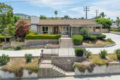 This two-story residence boasts 4 generously sized bedrooms 2 on the main level and 2 on the lower level. The open-concept living and dining areas are illuminated by large double-pane windows, filling the space with natural light. Downstairs, the expansive family room offers built-in shelves, a tiled fireplace, and a bar area complete making it an ideal spot for gatherings. The home is set on a sprawling 16,000 sq. ft. lot, which includes a large backyard with a covered patio, a sizable pool, a well-maintained lawn, and an orange tree among other vegetables.