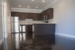 Our 2 bedroom, 2.5 bathroom Townhome (the Cabernet), features stained concrete flooring in the shared spaces downstairs, and carpeted upstairs and two covered parking spaces. There's also a half bathroom downstairs; both the bedrooms upstairs will have a bathroom.