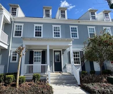 Welcome Home! Come see this pristine former model home, nestled in the popular Celebration Island Village. This beautiful, spacious 3 bedroom, 2.5 bath town home checks all of the boxes. Luxurious style, convenient location, and charming community. Beginning with the inviting covered front porch you enter the elegant open living area with laminate flooring, tv wall mount, and ceiling fan, leading to the gourmet upgraded kitchen with stainless appliances, GAS DOUBLE-OVEN, vented microwave, 42" cabinets with crown molding, pendant lighting and large island with sink. From the kitchen you have easy access through the tall sliding glass doors to the private, covered, fenced-in, courtyard with ceiling fan. Great for relaxing or entertaining guests. It also serves as a covered walkway from the two car garage in the rear of the home with automatic garage door opener, EV CHARGING OUTLET, and epoxy painted flooring. Also in the great room is the half bathroom and a double door closet with custom shelving. Moving to the top of the stairs you have the laundry room with front loading washer/dryer with pedestals and cabinet storage. To your left is the large primary bedroom including two separate large walk-in custom California closets for that added touch of organization and luxury. Then you have the primary bathroom with dual sinks, frameless glass shower, and separate toilet room. Back to the top of the stairs are the other two large bedrooms joined by the Jack and Jill full bathroom with dual sinks and tub / shower. The home is conveniently located right next to Island Village Elementary School and offers easy access to Celebration’s array of parks, walking trails, shops, Publix grocery store, gas station, restaurants, major highways ( I-4 & 417), community events, and all the magic of nearby Disney attractions. Enjoy Island Village amenities including a Zero entry pool with lounge areas. Fitness Center with app-enabled indoor fitness station, and resort-style clubhouse with screened in lanai.