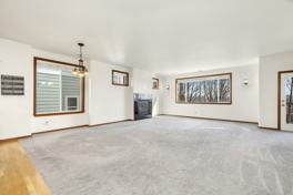The heart of the home is the modern kitchen, complete with sleek stainless steel appliances, ample cabinetry, and plenty of counter space—perfect for both everyday meals and entertaining. The open living area is warm and inviting, highlighted by a cozy fireplace that creates the perfect atmosphere for relaxing evenings.