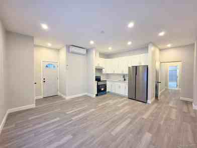 Beautifully renovated 2-bedroom, 1st-floor apartment featuring a bright and spacious open-concept layout. The modern kitchen offers white shaker cabinets, stainless steel appliances, an electric stove, refrigerator, and a stylish subway tile backsplash, creating a clean and contemporary space for cooking and entertaining. The living and dining area provides plenty of room for comfortable everyday living and is enhanced by recessed lighting, high ceilings, and modern flooring throughout. The apartment also features split-unit air conditioning/heating and the convenience of an in-unit washer and dryer. All electric utilities, making it simple and efficient to manage. Conveniently located near shopping, restaurants, and transportation. A great opportunity for comfortable and modern living.