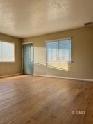 Approximately 850 sq. ft. two bedroom, 1 bathroom upstairs unit. New paint, new flooring, new appliances. Kitchen has new stainless steel appliances new luxury vinyl flooring, tile countertops, backsplash, and sliding door leading to covered balcony. Luxury vinyl flooring throughout, new ceiling fans in each bedroom, and sliding mirror closet doors. New blinds & fixtures. Detached garage with washer/dryer hook-ups and garage door leading bistro style backyard. Evaporative cooling and forced air heating.