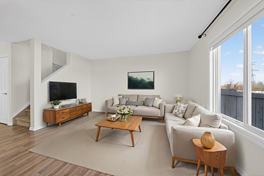 Welcome to Charlesworth! This charming half duplex offers comfort and convenience with FRESH PAINT throughout, a single attached garage, and a spacious backyard deck backing onto green space with easy access to the Henday. The bright main floor features a functional kitchen, dining area, cozy living room, and 2-pc bath, while upstairs offers three generous bedrooms, a 4-pc bath, and a primary suite with dual closets and a private 3-pc ensuite. The unfinished basement is ready for your personal touch or extra storage a fantastic opportunity in a sought-after location! Tenant pays all utilities. Pet subject to approval. Courtesy Realty Focus.
