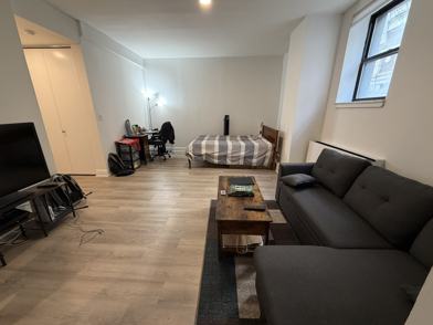 May 11 - August 17th fully furnished summer sublet. Large alcove studio with high ceilings and huge closets. Separate windowed kitchen.