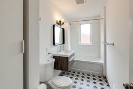 Completely renovated, large, well-lit, lower-floor, 1-bedroom unit in a quiet residential neighbourhood triplex. Suitable for 1 or 2 people (no pets). New tiled bathroom with all new fixtures. New kitchen cabinets with new stainless-steel appliances, including dishwasher and quartz countertop. New windows, new doors, refinished wooden floors and tiles throughout. Available April .1, 2026, 1-year standard Ontario lease. Hydro paid directly by tenant, Gaz and water based on consumption (est. 100/month). Non-smoking. 5 min walk from Eglinton LRT, 15 min from new Mount Dennis UP & GO station. Parking with permit on the street (there are plenty of street permits available). Coin operated laundry on same floor.