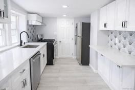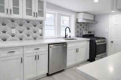 Welcome to 70 S Cottage Street in the heart of Valley Stream. This beautifully renovated cottage-style rental has been completely updated from top to bottom with high-end finishes and quality construction throughout. The interior features new wood-look vinyl flooring, recessed LED lighting, fresh neutral paint, and modern split-unit heating and cooling systems. The designer kitchen is equipped with white shaker cabinetry, quartz countertops, an elegant patterned tile backsplash, stainless steel appliances, and ample cabinet and prep space. The fully renovated bathroom offers marble-style tile finishes, a glass enclosed shower, gold hardware and fixtures, and a backlit vanity mirror. Additional highlights include an in-unit washer and dryer, covered front porch, and side yard. Conveniently located near shopping, dining, transportation, and all that Valley Stream has to offer. Available for immediate occupancy.