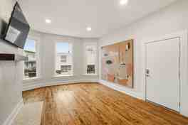 This beautifully updated 2-bdrm lower unit blends timeless architectural charm w/ modern finishes throughout. Enter through original stained glass double doors into a shared foyer that highlights the home's historic charm. Inside, you'll find bright, welcoming living spaces with tall ceilings, oversized windows, and rich HDWD floors. The spacious living room is filled with natural light and classic detailing. The renovated kitchen offers quartz CNTP, subway tile backsplash, and SS appliances in a clean, functional layout. In-unit washer and dryer provide added convenience. The updated full bath showcases marble-style tile surround, modern fixtures, glass block window detail, and a sleek vanity . Two well sized BDRMS and neutral finishes throughout complete this thoughtfully updated space.