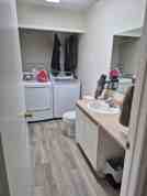 There are 2 bedrooms and 1 bathroom upstairs. The main floor has a kitchen, dining area, living room, and bathroom with a laundry area. There is also an unfinished basement that has a lot of space to be used for an office, storage or workshop.
