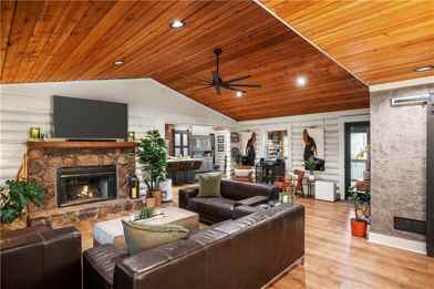 Amazing opportunity to lease a mountain retreat in town. A truly chic log cabin in the burbs on a large 1 acre lot. This home has amazing features and is impeccably finished throughout, and it is fully furnished. From the picture-perfect rocking chair front porch to the covered rear deck and patio (the patio has a custom concrete topped outdoor bar great for entertaining and relaxing), this is a remarkable home for you to enjoy. The main level has an inviting living space with large stone fireplace and open flow to the kitchen. Both areas with vaulted tongue and groove wood ceilings. The warm master retreat is also on the main floor. The lower level has a great entertaining space with second large TV, and has an additional two bedrooms (or possible home office/fitness room) and a full bath. Sliding glass doors lead to the lower covered patio. From the patio walkout onto the park-like backyard great for playing, and finish the day with an evening by the large firepit area fla...