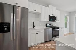 The main floor offers a large living and dining area that flows into a modern kitchen with sleek finishes and full appliances including a refrigerator, range, microwave, and dishwasher. The layout is perfect for hosting or simply enjoying a spacious, connected living area.