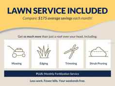 Complete lawn maintenance, including mowing, shrub pruning, irrigation system service, turf and plant fertilization and plant pest control, is provided by the HOA.
