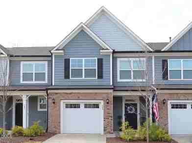 Built in 2022, this contemporary two-level townhome is located in Highland Park, less than 15 minutes from Research Triangle Park, Duke University and downtown Durham. The property features an open floor plan, with a combined living/dining area and kitchen on the main level and three bedrooms on the upper level. Step into an entry hall with a half bath, coat closet, built-in hall tree, and garage access. A center island and breakfast bar separates the kitchen from the living and dining space. The kitchen features quartz counters, tile backsplash, and stainless appliances. There is wood look plank flooring throughout the main level of the home. A glass slider leads from this space to the back patio. The bedrooms, full bathrooms, loft space and laundry room are on the upper level. This level is carpeted, with wood look plank flooring in the bathrooms. The master bedroom features a tray ceiling with a ceiling fan, walk-in closet, and a private bathroom with a double vanity and tile surround shower. Each bedroom has a ceiling fan. The second bathroom features a tub shower. A loft space completes this level, perfect for use as an office or reading nook. The patio behind the home has privacy panels on both sides. The garage has space for one car. There is a dog park and a playground across from the home. Pet with fee and prior approval. The unit will be unfurnished, furniture in photos is not included. $15/mo filter fee.