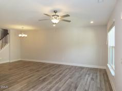 Built in 2022, this contemporary two-level townhome is located in Highland Park, less than 15 minutes from Research Triangle Park, Duke University and downtown Durham. The property features an open floor plan, with a combined living/dining area and kitchen on the main level and three bedrooms on the upper level. Step into an entry hall with a half bath, coat closet, built-in hall tree, and garage access. A center island and breakfast bar separates the kitchen from the living and dining space. The kitchen features quartz counters, tile backsplash, and stainless appliances. There is wood look plank flooring throughout the main level of the home. A glass slider leads from this space to the back patio. The bedrooms, full bathrooms, loft space and laundry room are on the upper level. This level is carpeted, with wood look plank flooring in the bathrooms. The master bedroom features a tray ceiling with a ceiling fan, walk-in closet, and a private bathroom with a double vanity and tile surround shower. Each bedroom has a ceiling fan. The second bathroom features a tub shower. A loft space completes this level, perfect for use as an office or reading nook. The patio behind the home has privacy panels on both sides. The garage has space for one car. There is a dog park and a playground across from the home. Pet with fee and prior approval. $15/mo filter fee.