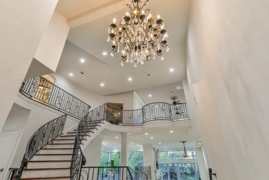 Exquisite home located in Piney Point Estates. This modern home with a Mediterranean twist welcomes you through a private community gate at the end of a cul de sac, featuring wall of windows overlooking a wooded ravine, offering uttermost privacy and plenty of natural light throughout. Amenities include superb finishes, elegant rod iron staircase, two master bedrooms, crystal chandeliers, natural stone, hardwood floors, theater, two flex rooms, two split level decks, and much more. This house is perfect for entertaining guests with an open floor plan. Must see to appreciate the beauty of this unique property.