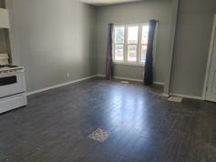 The beauty of this house is the large open concept living room, kitchen combination. There are 2 bedrooms on the main as well as one upstairs. The bathroom is on the main floor. The only room upstairs is a small bedroom. Bathroom on the main floor as well. There is a very large deck and a fenced yard in the rear of the house. Come and see the living room and picture yourself with all that space and your family enjoying it with you.