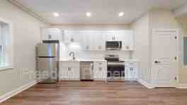 Enjoy a private entrance at street level and enjoy an open floor plan with a custom Shaker kitchen boasting quartz countertops, stainless steel appliances, space for a dining nook and living room, in-unit laundry hookups for a stackable