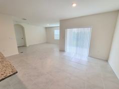 4 bedroom, 2 bathroom single family home in DR Horton's “Forest Lake” community in Davenport. Only about 1 mile from Publix and the hospital. This very well laid out home has a large main living area with open living room, dining room, and kitchen. The bedrooms are split to provide more privacy. The kitchen has beautiful stone counters that accent the light cabinets and Stainless steel appliances, Fridge to be installed soon. A walk-in pantry, island with sink and breakfast bar, and open to the living and dining rooms for central entertaining. The dining room sliding door gives access to the back covered lanai with decent sized back yard. The master bathroom has separate toilet room, walk-in shower stall, dual sinks and a side closet next to the main walk-in closet. The laundry room is near the front 3 bedrooms that share the second bath and are all connected by the front hall with arched openings for more style. Tiled floors through the main living, kitchen, and baths. Carpet in bedrooms. backyard has large buffer area of retention so you have more space. Garage opener to be installed. The Forest Lake community has a swimming pool, cabana, sand volleyball court, and playground. Forest Lake is right off route 27 just a few miles from I4. Publix is 1 mile away and hospital 1.5. Many other shops, schools, and restaurants are nearby on route 27 with more being built and Disney a few miles up I4. HOA and lawn care included. Renters insurance is required. Please email for more info and basic requirements for viewing. Available today. All information is deemed reliable but not guaranteed. Available now to make this your home.
