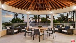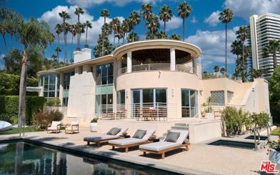 First time on the market since built by engineer for his own family! Beautifully sited on a quiet cul-de-sac north of Sunset in prime Beverly Hills, this gated contemporary masterpiece drawing inspiration from master architect Richard Meier and the iconic Hotel del Coronado, offers approximately 9,525 square feet of refined architectural living (including car lover's garage/lounge and bonus spaces/ approx. 1,700 sq ft. of viewing decks). Recently reimagined renovation, the residence blends modern architecture with timeless craftsmanship, designed for the ultimate indoor/outdoor California lifestyle. A dramatic glass and stone entry with sweeping spiral staircase sets the tone, while soaring ceilings and expansive windows frame unobstructed views stretching from Downtown to Palos Verdes without a lengthy hilltop drive. Natural stone finishes, a full-service elevator, custom cabinetry, and abundant natural light create a warm yet sophisticated backdrop throughout. The private first floor primary suite is a sanctuary, complete with two full spa-like bathroom suites featuring a cedar sauna, Jacuzzi, walk-in stone shower, and oversized dual dressing rooms with bar sink and refrigerator. This hotel-like primary was designed with low decks overlooking the pool and immediate access for a morning swim. Two additional en suite bedrooms on the first floor are perfect for guests or dual offices. Staff room on main floor designed with immediate access to the kitchen and entertaining areas while maintaining privacy for the primary main floor wing. On the upper floor at the heart of the home, a gourmet chef's kitchen boasts a Viking range, dual Sub-Zero refrigerators, wine storage, and a large bright breakfast room opening to an outdoor living room. Formal and informal dining spaces flow seamlessly to a covered outdoor terrace, perfect for entertaining with views of Century City and Downtown. The lower level is dedicated to entertainment with a full-floor recreation space which could be used for a gym, media lounge, pool table, secondary kitchen, full bath and private entry, ideal for guests or multi-generational living. A 500+ bottle wine cellar, wet bar, and multiple fireplaces enhance the lifestyle. Outside, lush landscaped grounds unfold around a dark-bottom infinity pool, dual spas (one a walk-in perfect for a cold plunge), sport court, rose garden, and citrus orchard. Mature palms, expansive lawns, and dramatic nighttime lighting complete the resort-like setting. Additional highlights include a dumb waiter servicing all levels, 5-zone HVAC, central vacuum, security system, commercial backup generator, and an 5-car collector's garage with additional motor court parking.