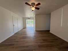 Newly remodeled 3 bed 1 bath home with 1 car garage, fenced yard, and covered patio. Tenant pays all utilities. W/D hookups. Updated kitchen with white shaker cabinetry, granite countertops, and stainless steel appliances. Solid surface flooring throughout. Small pet negotiable with additional fee. 1 year lease. No smoking on premises.