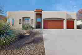 Absolutely Stunning modern Pueblo Design 2798/sf home. Raised ceiling entry, stained concrete floors, abundance of natural light, open living with gas kiva fireplace, culinary dream kitchen, laundry room, carpet in three spacious bedrooms, primary includes soaking tub and separate shower, additional main full bath and powder room. Solar features, Refrigerated air, three car garage, Beautiful easy care landscaping, rear yard w/patios. Wonderful west side location, bike trails and pathways around the corner. No smoking, no pets please. Tenants pay all utilities and renters insurance. To schedule showing and for acceptable application go to www MaddoxMgmt com