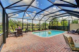 Welcome to 8480 Serena Creek Ave, a beautiful home designed for relaxed indoor-outdoor living in the highly desirable Canyon Trails community. The backyard offers a peaceful setting with serene lake views, natural surroundings, and the calming sounds of nature. The outdoor space is truly the highlight of the home, featuring a screened-in saltwater pool, spacious deck, and covered patio ideal for outdoor dining and entertaining. The fully fenced yard provides privacy and space for pets, while accordion hurricane shutters and a covered patio make storm preparation simple and convenient. Inside, the popular Acapulco floor plan offers a thoughtful layout with a tiled guest bedroom on the first floor, perfect for visitors or a home office. The kitchen is designed for both functionality and entertaining, featuring granite countertops, a center island, stainless steel appliances, a French-door refrigerator, slide-in range, and a striking vented stainless-steel hood. A raised breakfast bar and ample cabinetry with pull-outs and pantry storage complete the space. The upgraded staircase with wood handrails and wrought iron balusters leads to a spacious second-floor loft, ideal as a family room, workspace, or play area. Upstairs you'll find the primary suite and additional guest bedrooms. The primary suite includes two walk-in closets and a well-appointed bathroom with marble finishes, wood cabinetry, and upgraded fixtures. One additional bedroom includes its own en-suite bathroom, plus another guest bedroom and full bath. Storage is abundant throughout the home, including walk-in closets in every bedroom, a large storage area under the staircase, and a floating storage loft in the three-car garage. The laundry room is well-equipped with upgraded washer and dryer, cabinetry, laundry sink, and folding counter space. Residents of Canyon Trails enjoy exceptional amenities including a clubhouse, indoor sports complex, fitness center, yoga and dance studio, kids activity center, resort-style pool, water park, playgrounds, basketball courts, tennis courts, and open play fields. The community also offers 24-hour gated security and beautifully maintained common areas. The location is ideal with easy access to the Florida Turnpike, nearby shopping and dining at Cobblestone Plaza, Canyon Town Center, and Delray Marketplace, plus elementary and middle schools located within about a mile of the community. The home is available with a 12-month lease, with first month's rent and a security deposit due at signing. Tenants are responsible for utilities such as electricity, water, internet, and routine pool maintenance. No smoking is allowed inside the home. Pets may be considered with prior approval and an additional deposit. Renters are also expected to follow community and HOA guidelines and help maintain the property in good condition throughout the lease.