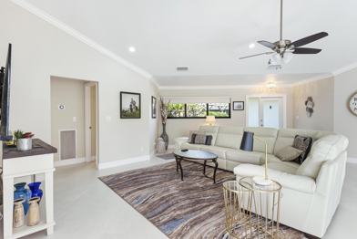 Beautifully upgraded 2BR/2BA beachside villa in Bella Vista, one of Jupiter's most desirable walk-to-the-beach communities. This fully furnished, turnkey residence offers a bright open layout with tasteful upgrades throughout. The primary suite features a king bed, while the guest bedroom includes two queen beds, perfect for family and guests. Enjoy a private fenced patio with BBQ, ideal for outdoor dining and enjoying Jupiter's ocean breezes. Just steps to Carlin Park, the Heart Trail, and lifeguard-patrolled beaches. Bella Vista amenities include pool, clubhouse, tennis, pickleball, bocce, and racquetball. Walk to restaurants, shopping, entertainment, Harbourside, the Par 3 Golf Course, and the Maltz Theatre. Enjoy the best of the Jupiter lifestyle! Secure your winter home today!