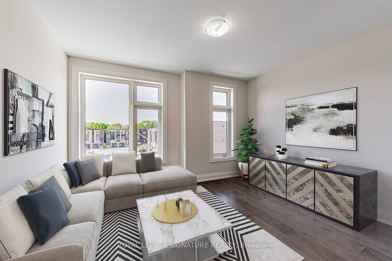 Modern upper-level 4-bedroom, 3-bath townhome in a newly built legal duplex, ideally located in North York near Lawrence Ave E and Blackstone Rd. Bright open-concept living space with a modern kitchen featuring an over-the-range microwave and 5-burner gas stove. Enjoy 2 parking spaces (1 garage, 1 driveway), full in-suite laundry, and a balcony with gas line for BBQs. Situated on a quiet cul-de-sac, perfect for families, with convenient access to parks, schools, shopping, transit, and major routes including the DVP and Hwy 401. Utilities are extra and shared with the lower unit on a 70/30 split.