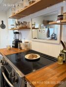 Inside, you’ll find sun-filled rooms, warm wood floors, and inviting living areas that create a cozy and welcoming atmosphere. The updated kitchen features butcher block countertops, open shelving, modern appliances, and a farmhouse-style aesthetic, making it both stylish and functional for everyday cooking and entertaining.