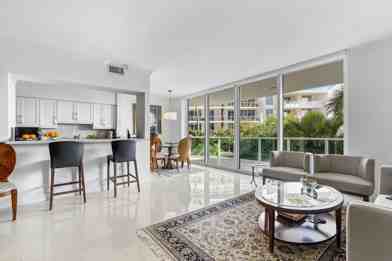 For annual rental. Located on the 3rd floor facing NE Boca Raton, 1 bedroom + den, 2 bath, 9 ft ceilings. Bright, refined, it offers spacious open living, a large covered balcony with lush palm views, elegant modern finishes throughout including crown mouldings. Enjoy floor to ceiling impact glass, a white chef's kitchen with stone counters, and a generous primary suite with custom walk in closet and spa style bath. Step inside to expansive living and dining areas framed by oversized sliding glass doors that fill the home with natural light and open to a private balcony overlooking tropical landscaping. Polished large format tile floors create a seamless, sophisticated feel throughout the main spaces.