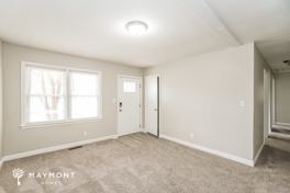 In addition to the three bedrooms, the home includes a den that provides flexible space for a second living area, workspace, or recreation room. Each bedroom is spacious and includes large windows that bring in natural light. The full bathroom is centrally located and features a tub and large vanity.