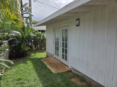 Fully Furnished Studio in the Middle of Haleiwa Town Parking - 1 small vehicle on yard - no ability for charging EV. Friendly dog on property - not permitted in the studio. Washer/Dryer on property and shared. Utilities are included. Monthly - 30 day rental minimum (due to . Property is located in the middle of Haleiwa Town. You can walk to all the restaurants and the beach. However, if you want to stay home and cook, cooking equipment includes water kettle, microwave, electric burner, and rice cooker. Living space opens up into the yard. Up four steps is the bathroom and bedroom, tucked away beyond a privacy wall. Bathroom has stall shower. Bedroom complete with two closets, one for hanging clothing and one with cubes and baskets for other clothing and accessories. There is minimal storage out of the way, under the stairs. Studio has exhaust fan to cool the space while enjoying the fresh air and open windows. I (property owner) live in attached house - with the dog. No smoking on property. Easily accessible by public transit - car not needed to enjoy the area. Breakdown of Fees: 2200 month - includes utilities- GET, Tat, and OTAT taxes 125 cleaning fee (displayed as move in fee)
