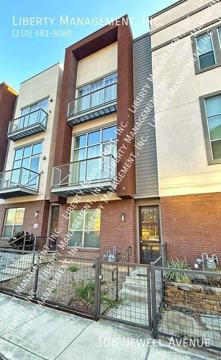 In the heart of Pearl District is this contemporary, chic, 2 bedroom, 3.5 bathroom townhouse with Riverwalk views! Through a frosted glass door is a functional entryway dressed in concrete that extends into a bonus room. Hardwood floors sweep the stairs and into an open gourmet kitchen, equipped with stainless steel appliances and sleek Corian countertops. The adjacent living room enjoys high ceilings, floor-to-ceiling windows, and a private balcony. Bedrooms are located on the 3rd floor for optimal privacy. Wake up to a breathtaking view in a dreamy primary bedroom that features a Juliette balcony and an en-suite bathroom with custom tile work. This home also includes an expansive attached garage. The city's dining and shopping mecca are at your doorstep. This location is less than a block from the Pearl, across the street from Otto's Ice House, The Grotto, Riverwalk access and provides easy access to 35 and 281.
