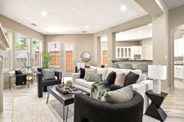 This thoughtfully designed home features soaring ceilings and expansive windows that fill the space with natural light. The spacious kitchen offers generous prep and storage space, perfect for those who love to cook and entertain, complete with a breakfast bar and dedicated dining area. Additional highlights include a cozy fireplace, custom built in media cabinetry, a private enclosed yard, and a two car garage.