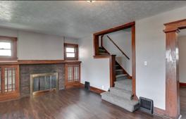 As you enter the home, you are welcomed by a large living area featuring gorgeous flooring, abundant natural light, and stunning original wood trim that adds warmth and character throughout the space. The decorative fireplace and built in cabinetry create a beautiful focal point while the open layout provides plenty of room for entertaining or relaxing.