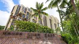 Experience the ultimate resort lifestyle in this beautifully upgraded one-bedroom residence at the prestigious Mauna Luan in Hawaii Kai. Located on the fourth floor, this unit sits at a serene tree top elevation, offering lush tropical views and refreshing valley breezes. The interior has been thoughtfully modernized with elegant laminate flooring, granite countertops, and a full suite of stainless steel appliances, creating a sleek and functional living space. A built-in Murphy bed provides incredible versatility, allowing the possibility of a second bedroom to transition seamlessly between a restful retreat and a spacious living space.