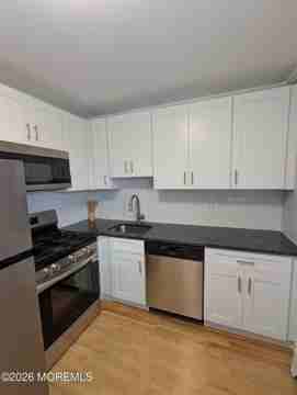 Rear opportunity to rent a well maintained upper level 1 Br/1Ba apartment at Laurel Gardens Co-op. Ideally located near all major roads, Netflix Studios at Fort Monmouth, shopping and Jersey Shore beaches. New kitchen with stainless steel appliances (dishwasher, gas range, microwave, refrigerator), new bathroom and hardwood floors throughout, spacious bedroom, plenty of closet space. Enjoy pool in the summer months. One assigned parking spot, laundry on premises. Rent includes gas, water, heat. Tenant pays for electric, cable and internet. Cat is allowed. No dogs community. Tenant must go through approval by the Laurel Gardens co-op.
