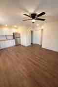This recently renovated apartment features a bright, modern interior with updated flooring throughout, fresh neutral paint, recessed lighting, and a clean, open layout. The kitchen offers white cabinetry, a full-size refrigerator, range with hood, and ample counter space, flowing nicely into the living area accented by a ceiling fan and natural light. The bathroom has been refreshed with a tiled tub surround, modern vanity, and updated fixtures. Bedrooms are well-sized with good closet space, and the overall layout provides a comfortable, functional feel. A shared laundry room is available on-site; washer and dryer are not included in the unit, and tenants must supply their own. This move-in-ready apartment offers a stylish, low-maintenance living option in a newly updated setting.