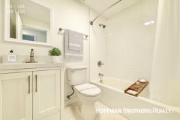 The bathroom has been updated with a new vanity, fixtures, and a tile tub/shower enclosure for a modern touch. The building offers on-site laundry, and most small pets are welcome.
