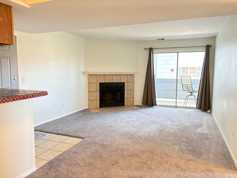 1 Bed 1 Bath second floor condo with central AC, full size washer/dryer, reserved parking space, updated appliances, breakfast bar, dining area, wood burning fireplace, spacious covered balcony with drop down sun screens for extra privacy and shade, and a big storage locker.