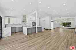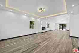 Located south of the boulevard in Woodland Hills, this remodeled home offers 3 bedrooms and 2.5 bathrooms with a functional open floor plan. The interior features wide-plank flooring, recessed lighting, and a modern kitchen equipped with quartz countertops, custom cabinetry, a center island, and stainless steel appliances. The backyard features a private pool, patio, and landscaped surroundings that provide a dedicated outdoor space. The layout includes a primary suite, two additional bedrooms, and updated bathrooms with contemporary finishes. The property is situated minutes from Ventura Boulevard, with access to nearby shopping, dining, and local amenities.