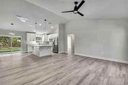FOR RENT NEW CONSTRUCTION 3 bedrooms, 2 baths and 2 garages. This home boast a gorgeous kitchen with many greats features including 1 1/4 quartz counter tops, 36 inches wall solid wood cabinets with soft close hinges, pantry and full underneath with plenty space for prepare meals. The master bedroom include a private shower bath with a beautiful porcelain tile, stone shower floor and walk-in closet. Vaulted celling in the living area and vinyl plank floor throughout the entire home. Enjoy the yard with a cover lanai, perfect for the entertain your family.