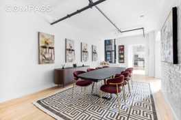 THE EPITOME OF LOFT LIVING IN THE WEST VILLAGE! This exceptional loft spans almost 2,400 square feet, ensuring optimal comfort with a generous, versatile interior that's serene, light-filled, and richly appointed. The spacious apartment seamlessly marries the old with the new. A top-of-the-line renovation complements original characteristics such as airy 10-foot ceilings, original columns, exposed brick archways, and industrial steel I-beams throughout. The generous living and dining rooms are brightened by oversized windows and yield a space that's ideal for both entertaining guests or quiet evenings at home. An opaque glass wall with a trifold door gives way to a charming library/office with a pullout sofa that easily doubles as a guest room. The sunny chef's, eat-in kitchen is elegantly styled with custom lacquered wood cabinetry, black granite countertops, and premium stainless steel appliances. It is accessed through a unique greenhouse passageway that overlooks the lush courtyard of a historic neighboring church. The massive primary suite is a lovely retreat highlighted by an oversized custom-fitted walk-in closet and includes an en suite opulent spa bath with radiant heated floors. The 5-fixture primary bath offers a deep soaking tub, separate glass shower, dual-sink vanity with custom-fabricated countertops, and private water closet. The oversized secondary bedroom offers custom built-in shelving and another huge walk-in closet. This too-good-to-be-true loft is rounded out with another full bath, a laundry room, through-wall heating and cooling, and generous storage throughout. Built in 1920 by John Jacob Astor as a former manufacturing site, 345 West 13th Street is a stunning boutique 7-story condo conversion with 46 lofts and a grand restored facade. This full-service elevator building has a 24-hour doorman, live-in super, and a landscaped common roof terrace. Situated on the corner of Hudson Street in the heart of the West Village, it is mere steps from the High Line, trendy restaurants, boutiques, museums, Chelsea Market, public transportation, and other conveniences.