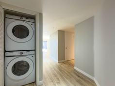 This bright and inviting unit features a spacious and functional layout with beautiful laminate flooring throughout and a modern kitchen complete with quartz countertops and a convenient breakfast bar that opens to the living area, making it perfect for both everyday living and entertaining. The living space is filled with natural light and opens to a private balcony where you can relax and enjoy the surrounding views.