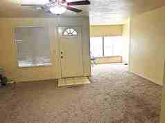 Inside, you’ll find a generous living area with comfortable carpeting that creates a warm and welcoming space to relax or entertain. The kitchen offers plenty of countertop space, making meal preparation easy and efficient.